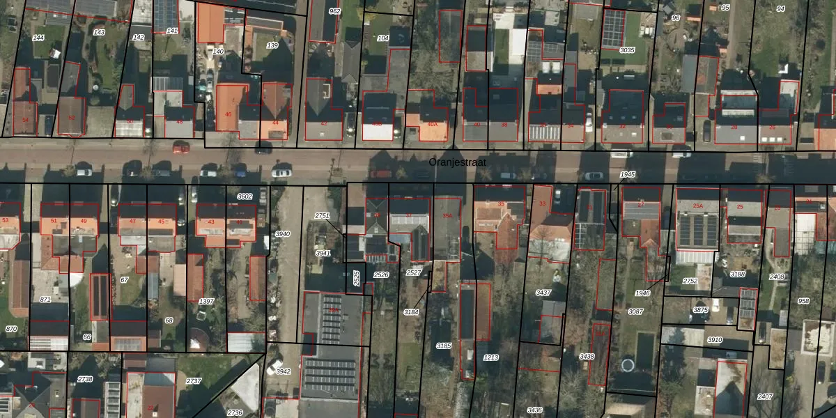 Het perceel waarop Oranjestraat 37 staat heeft een oppervlakte van 477 m². Dit is een groot perceel. De perceeloppervlakte wordt geregistreerd door het Kadaster. Gedetailleerde informatie over de maten van dit perceel kunt u vinden in het rapport Kadastrale kaart met maatvoering van Oranjestraat 37.