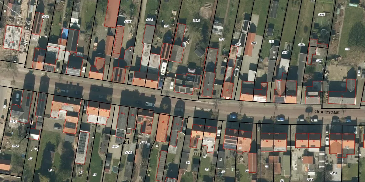 Het perceel waarop Oranjestraat 84 staat heeft een oppervlakte van 1225 m². Dit is een zeer groot perceel. De perceeloppervlakte wordt geregistreerd door het Kadaster. Gedetailleerde informatie over de maten van dit perceel kunt u vinden in het rapport Kadastrale kaart met maatvoering van Oranjestraat 84.