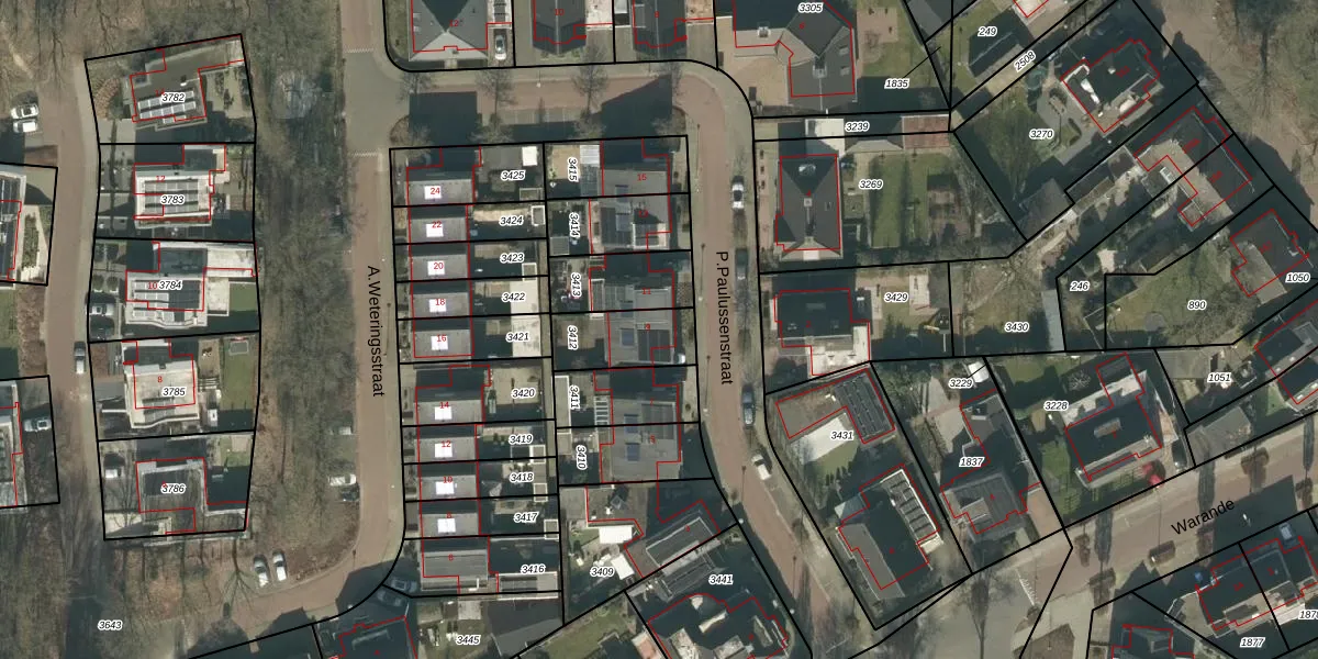 P.Paulussenstraat 9 is gelegen op kadastraal perceel GZE00L3412. Deze kadastrale aanduiding is uniek en wordt gebruikt door het Kadaster om eigendomsrechten en andere zakelijke rechten vast te leggen. Het perceel maakt onderdeel uit van de kadastrale gemeente Gilze en Rijen.