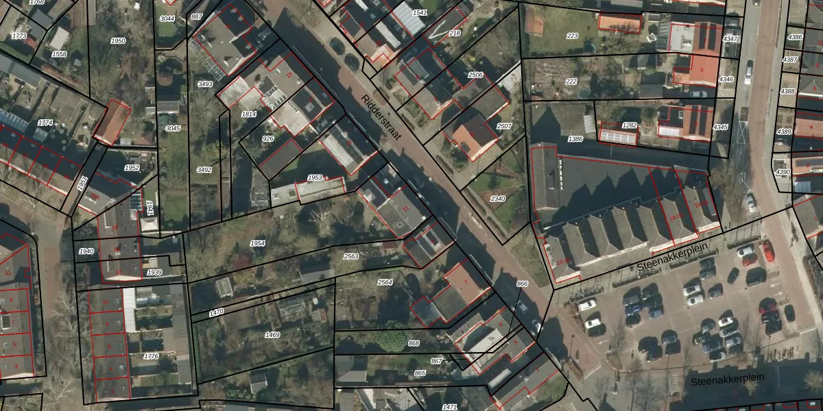 Ridderstraat 11 is gelegen op kadastraal perceel GZE00L1954. Deze kadastrale aanduiding is uniek en wordt gebruikt door het Kadaster om eigendomsrechten en andere zakelijke rechten vast te leggen. Het perceel maakt onderdeel uit van de kadastrale gemeente Gilze en Rijen.