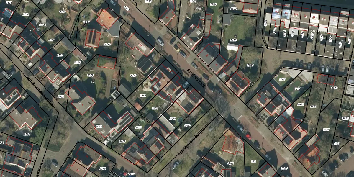 Ridderstraat 39 is gelegen op kadastraal perceel GZE00L1463. Deze kadastrale aanduiding is uniek en wordt gebruikt door het Kadaster om eigendomsrechten en andere zakelijke rechten vast te leggen. Het perceel maakt onderdeel uit van de kadastrale gemeente Gilze en Rijen.