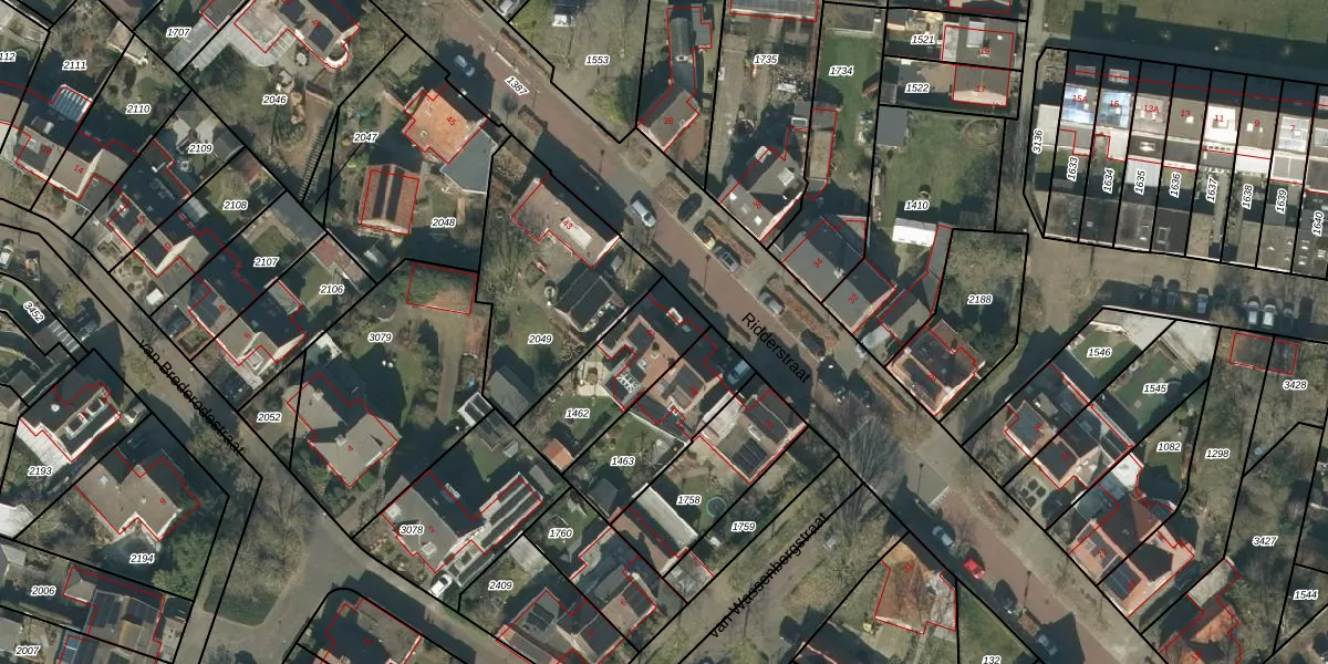 Ridderstraat 41 is gelegen op kadastraal perceel GZE00L1462. Deze kadastrale aanduiding is uniek en wordt gebruikt door het Kadaster om eigendomsrechten en andere zakelijke rechten vast te leggen. Het perceel maakt onderdeel uit van de kadastrale gemeente Gilze en Rijen.
