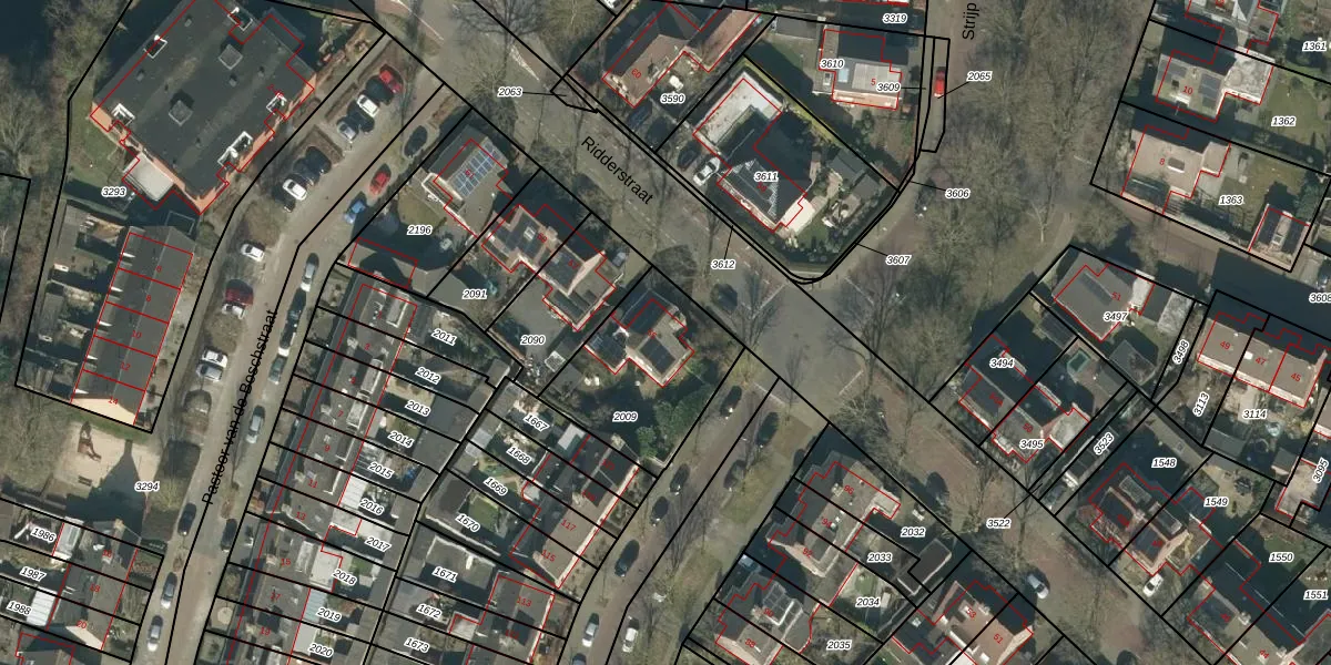 Ridderstraat 55 is gelegen op kadastraal perceel GZE00L2009. Deze kadastrale aanduiding is uniek en wordt gebruikt door het Kadaster om eigendomsrechten en andere zakelijke rechten vast te leggen. Het perceel maakt onderdeel uit van de kadastrale gemeente Gilze en Rijen.