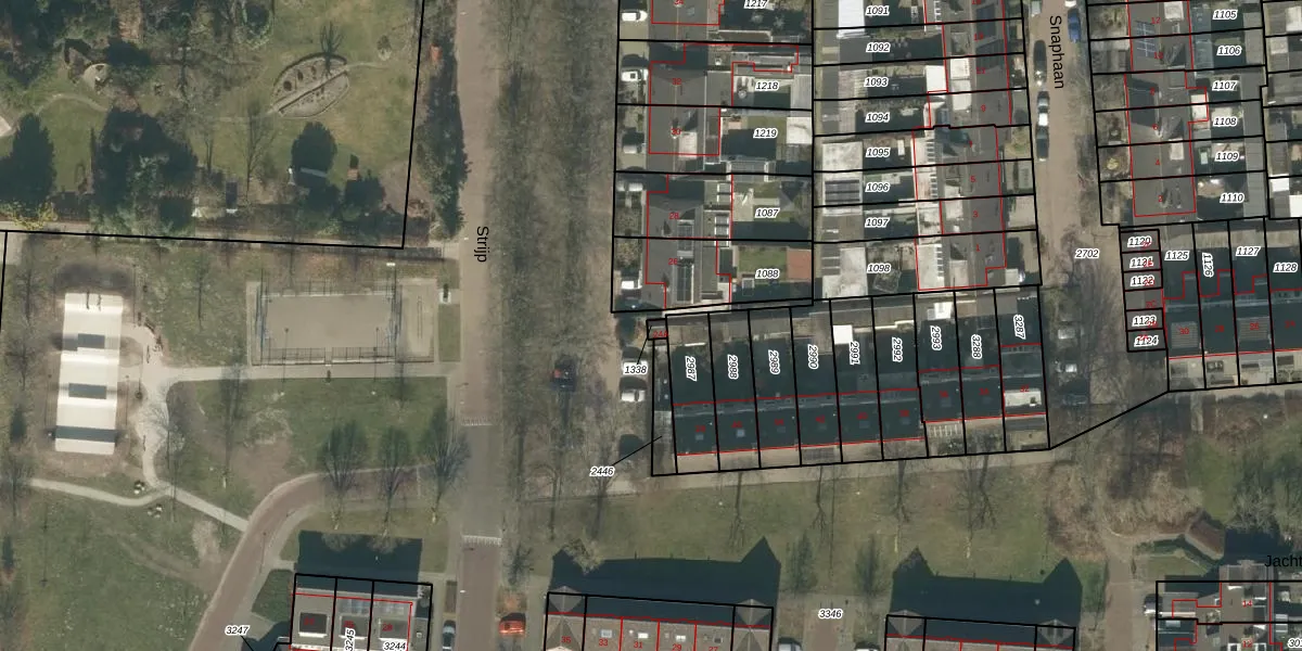 Het perceel waarop Strijp 24-A staat heeft een oppervlakte van 9 m². Dit is een klein perceel. De perceeloppervlakte wordt geregistreerd door het Kadaster. Gedetailleerde informatie over de maten van dit perceel kunt u vinden in het rapport Kadastrale kaart met maatvoering van Strijp 24-A.