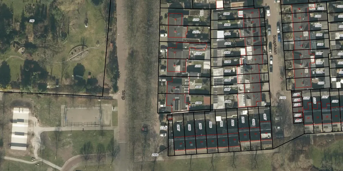 Gebruik de zoekbalk of klik op een perceel voor informatie over de adressen binnen dit perceel.