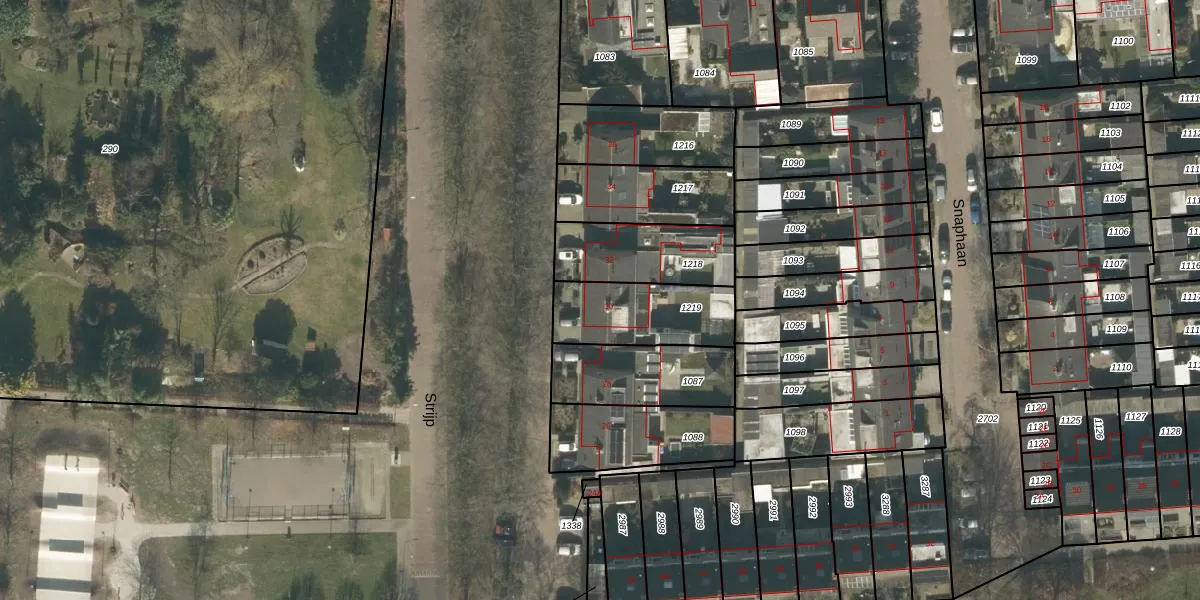 Het perceel waarop Strijp 30 staat heeft een oppervlakte van 303 m². Dit is een groot perceel. De perceeloppervlakte wordt geregistreerd door het Kadaster. Gedetailleerde informatie over de maten van dit perceel kunt u vinden in het rapport Kadastrale kaart met maatvoering van Strijp 30.