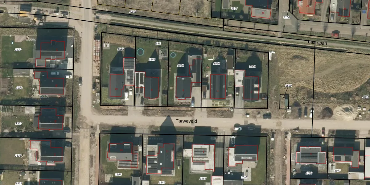 Het perceel waarop Tarweveld 6 staat heeft een oppervlakte van 629 m². Dit is een groot perceel. De perceeloppervlakte wordt geregistreerd door het Kadaster. Gedetailleerde informatie over de maten van dit perceel kunt u vinden in het rapport Kadastrale kaart met maatvoering van Tarweveld 6.