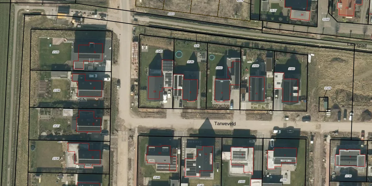 Het perceel waarop Tarweveld 8 staat heeft een oppervlakte van 660 m². Dit is een groot perceel. De perceeloppervlakte wordt geregistreerd door het Kadaster. Gedetailleerde informatie over de maten van dit perceel kunt u vinden in het rapport Kadastrale kaart met maatvoering van Tarweveld 8.