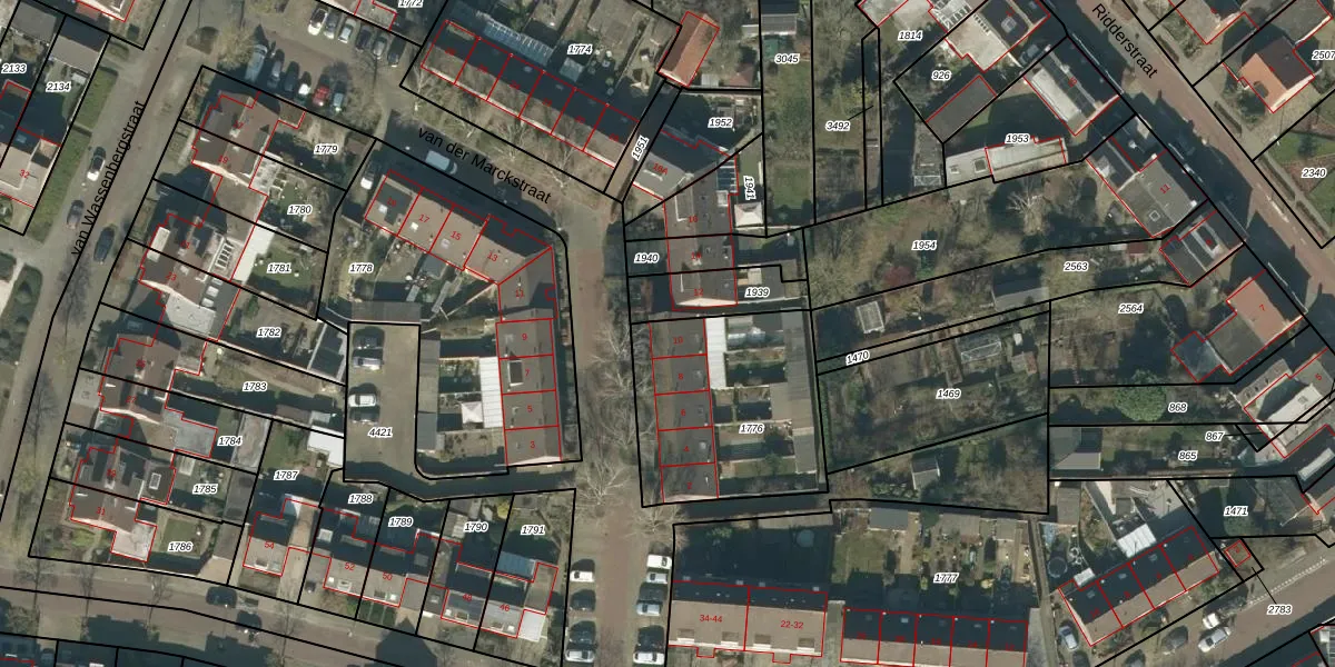 Het perceel waarop van der Marckstraat 10 staat heeft een oppervlakte van 755 m². Dit is een groot perceel. De perceeloppervlakte wordt geregistreerd door het Kadaster. Gedetailleerde informatie over de maten van dit perceel kunt u vinden in het rapport Kadastrale kaart met maatvoering van van der Marckstraat 10.