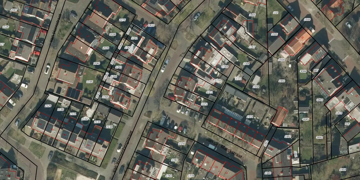 Het perceel waarop van Wassenbergstraat 15 staat heeft een oppervlakte van 228 m². Dit is een middelgroot perceel. De perceeloppervlakte wordt geregistreerd door het Kadaster. Gedetailleerde informatie over de maten van dit perceel kunt u vinden in het rapport Kadastrale kaart met maatvoering van van Wassenbergstraat 15.