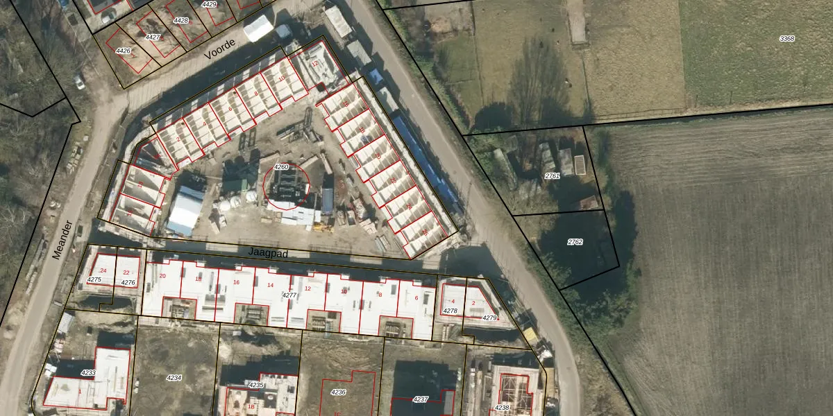 Het perceel waarop Veldstraat 24 staat heeft een oppervlakte van 2863 m². Dit is een zeer groot perceel. De perceeloppervlakte wordt geregistreerd door het Kadaster. Gedetailleerde informatie over de maten van dit perceel kunt u vinden in het rapport Kadastrale kaart met maatvoering van Veldstraat 24.