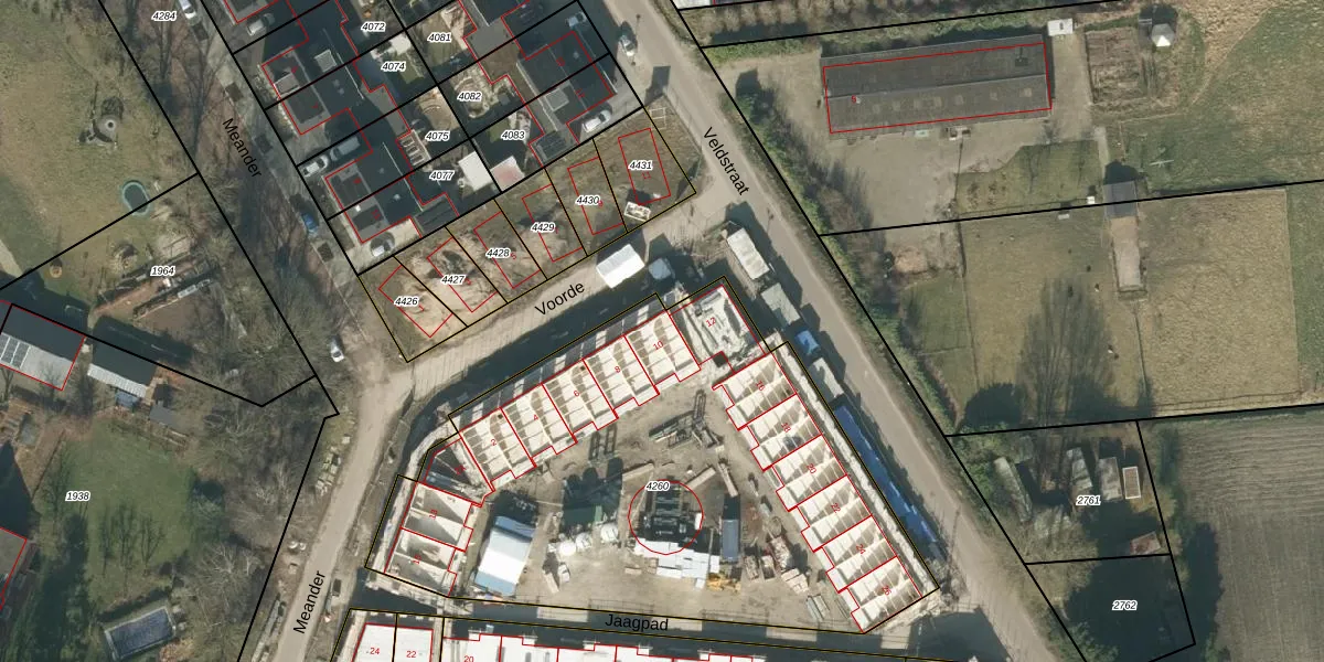 Het perceel waarop Voorde 10 staat heeft een oppervlakte van 2863 m². Dit is een zeer groot perceel. De perceeloppervlakte wordt geregistreerd door het Kadaster. Gedetailleerde informatie over de maten van dit perceel kunt u vinden in het rapport Kadastrale kaart met maatvoering van Voorde 10.