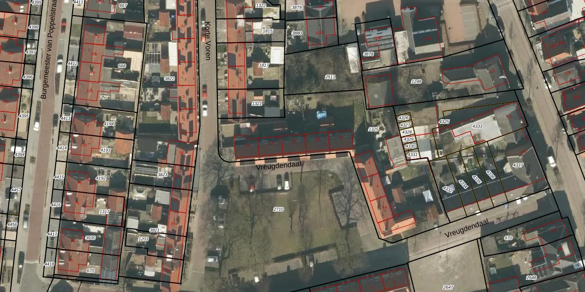 Vreugdendaal 12 is gelegen op kadastraal perceel GZE00L1325. Deze kadastrale aanduiding is uniek en wordt gebruikt door het Kadaster om eigendomsrechten en andere zakelijke rechten vast te leggen. Het perceel maakt onderdeel uit van de kadastrale gemeente Gilze en Rijen.