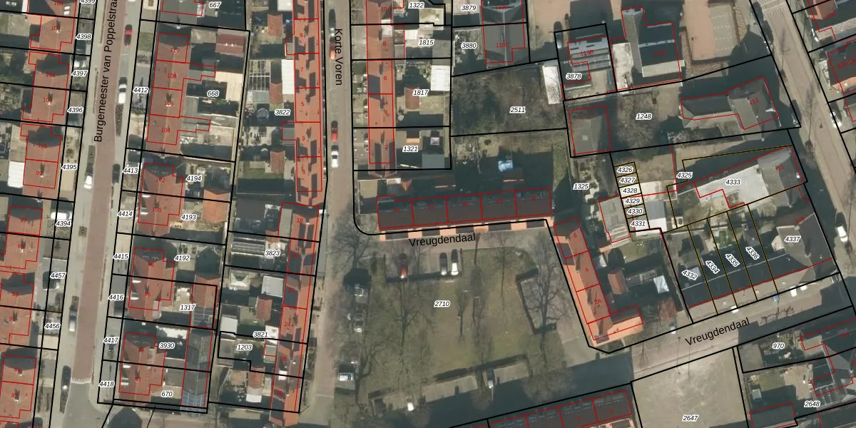 Vreugdendaal 14 is gelegen op kadastraal perceel GZE00L1325. Deze kadastrale aanduiding is uniek en wordt gebruikt door het Kadaster om eigendomsrechten en andere zakelijke rechten vast te leggen. Het perceel maakt onderdeel uit van de kadastrale gemeente Gilze en Rijen.