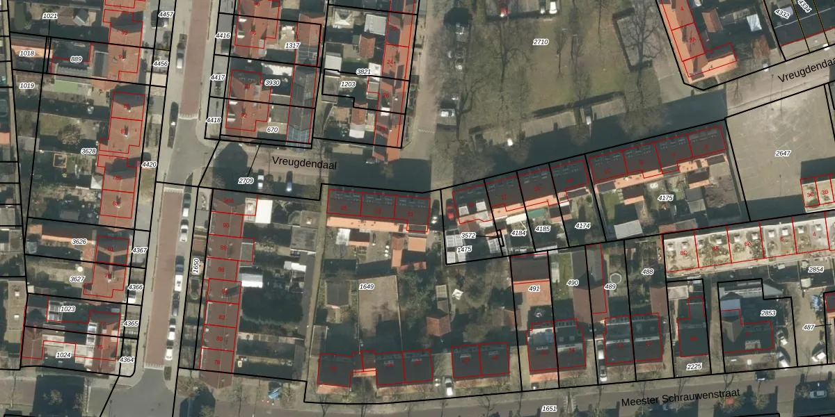 Het perceel waarop Vreugdendaal 21 staat heeft een oppervlakte van 3315 m². Dit is een zeer groot perceel. De perceeloppervlakte wordt geregistreerd door het Kadaster. Gedetailleerde informatie over de maten van dit perceel kunt u vinden in het rapport Kadastrale kaart met maatvoering van Vreugdendaal 21.
