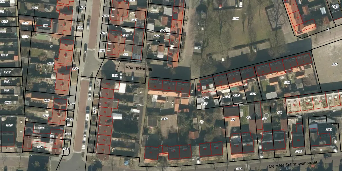 Vreugdendaal 23 is gelegen op kadastraal perceel GZE00L1649. Deze kadastrale aanduiding is uniek en wordt gebruikt door het Kadaster om eigendomsrechten en andere zakelijke rechten vast te leggen. Het perceel maakt onderdeel uit van de kadastrale gemeente Gilze en Rijen.
