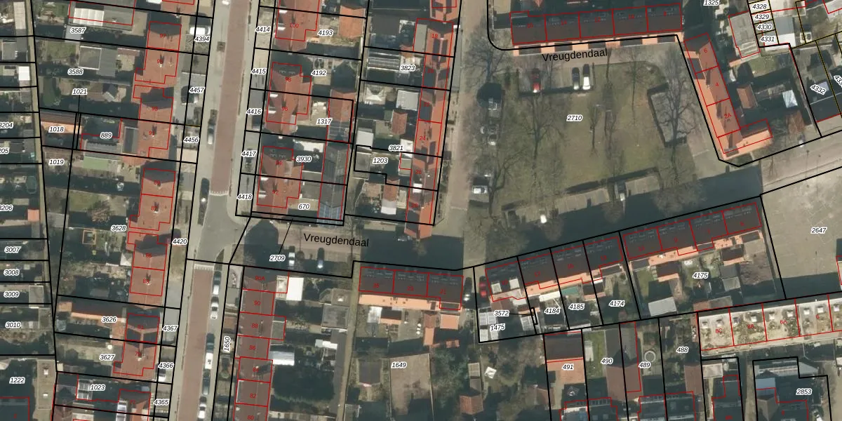 Vreugdendaal 28 is gelegen op kadastraal perceel GZE00L3821. Deze kadastrale aanduiding is uniek en wordt gebruikt door het Kadaster om eigendomsrechten en andere zakelijke rechten vast te leggen. Het perceel maakt onderdeel uit van de kadastrale gemeente Gilze en Rijen.