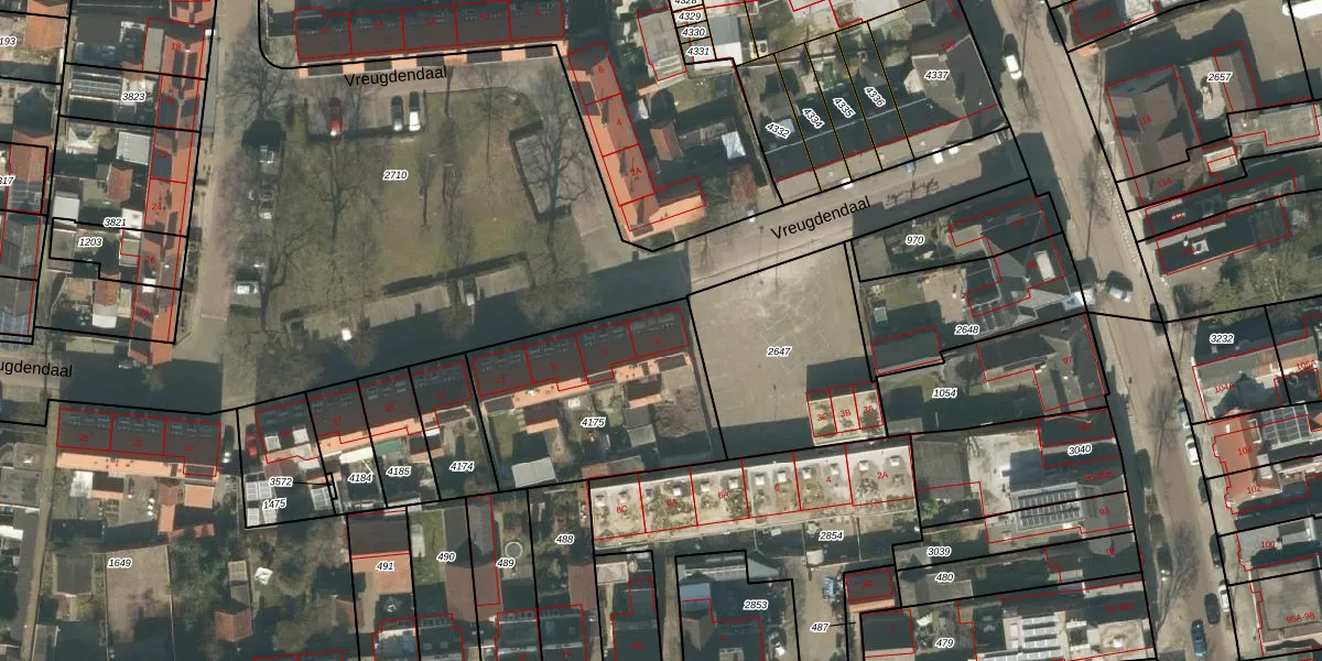 Vreugdendaal 5 is gelegen op kadastraal perceel GZE00L4175. Deze kadastrale aanduiding is uniek en wordt gebruikt door het Kadaster om eigendomsrechten en andere zakelijke rechten vast te leggen. Het perceel maakt onderdeel uit van de kadastrale gemeente Gilze en Rijen.
