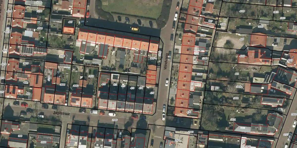 Het perceel waarop Windvang 1-C staat heeft een oppervlakte van 2980 m². Dit is een zeer groot perceel. De perceeloppervlakte wordt geregistreerd door het Kadaster. Gedetailleerde informatie over de maten van dit perceel kunt u vinden in het rapport Kadastrale kaart met maatvoering van Windvang 1-C.