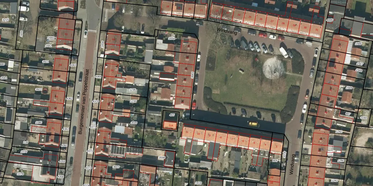Het perceel waarop Windvang 13 staat heeft een oppervlakte van 2980 m². Dit is een zeer groot perceel. De perceeloppervlakte wordt geregistreerd door het Kadaster. Gedetailleerde informatie over de maten van dit perceel kunt u vinden in het rapport Kadastrale kaart met maatvoering van Windvang 13.