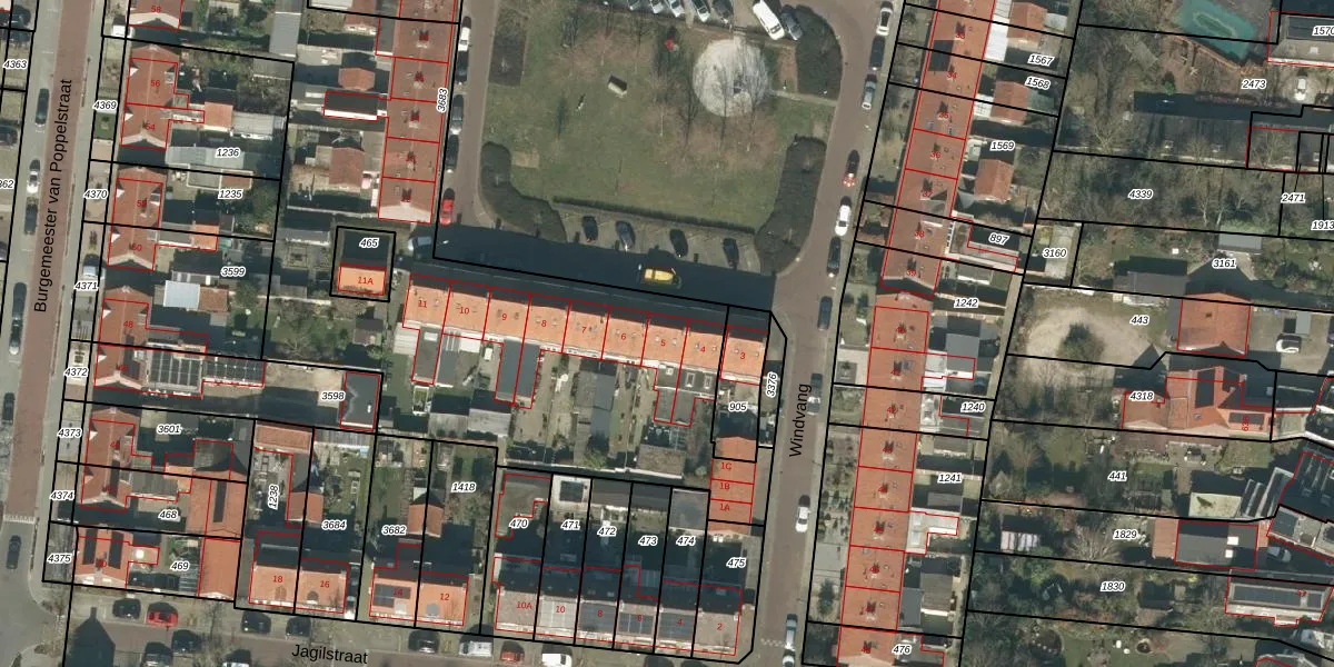Het perceel waarop Windvang 5 staat heeft een oppervlakte van 2980 m². Dit is een zeer groot perceel. De perceeloppervlakte wordt geregistreerd door het Kadaster. Gedetailleerde informatie over de maten van dit perceel kunt u vinden in het rapport Kadastrale kaart met maatvoering van Windvang 5.