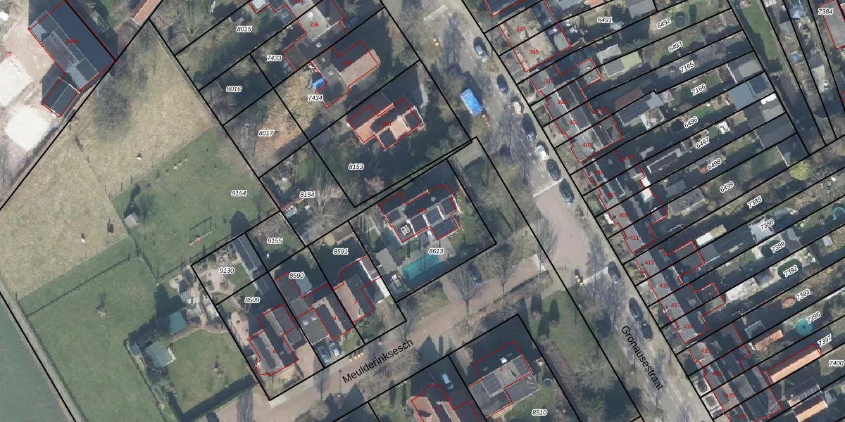 Het perceel waarop Gronausestraat 342 staat heeft een oppervlakte van 638 m². Dit is een groot perceel. De perceeloppervlakte wordt geregistreerd door het Kadaster. Gedetailleerde informatie over de maten van dit perceel kunt u vinden in het rapport Kadastrale kaart met maatvoering van Gronausestraat 342.
