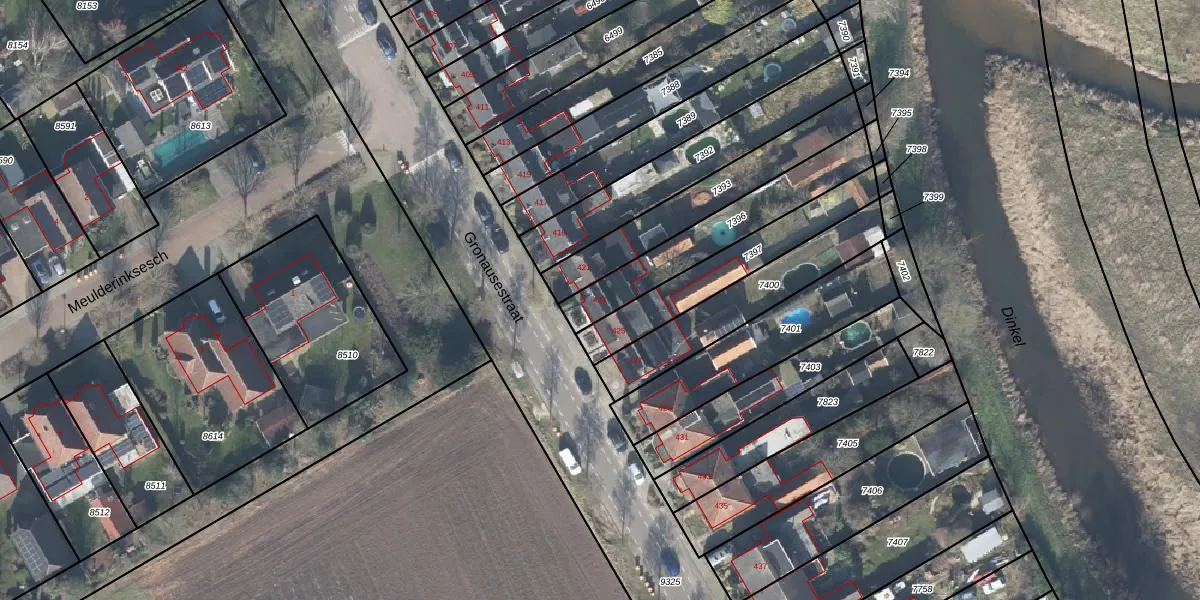 Het perceel waarop Gronausestraat 423 staat heeft een oppervlakte van 350 m². Dit is een groot perceel. De perceeloppervlakte wordt geregistreerd door het Kadaster. Gedetailleerde informatie over de maten van dit perceel kunt u vinden in het rapport Kadastrale kaart met maatvoering van Gronausestraat 423.