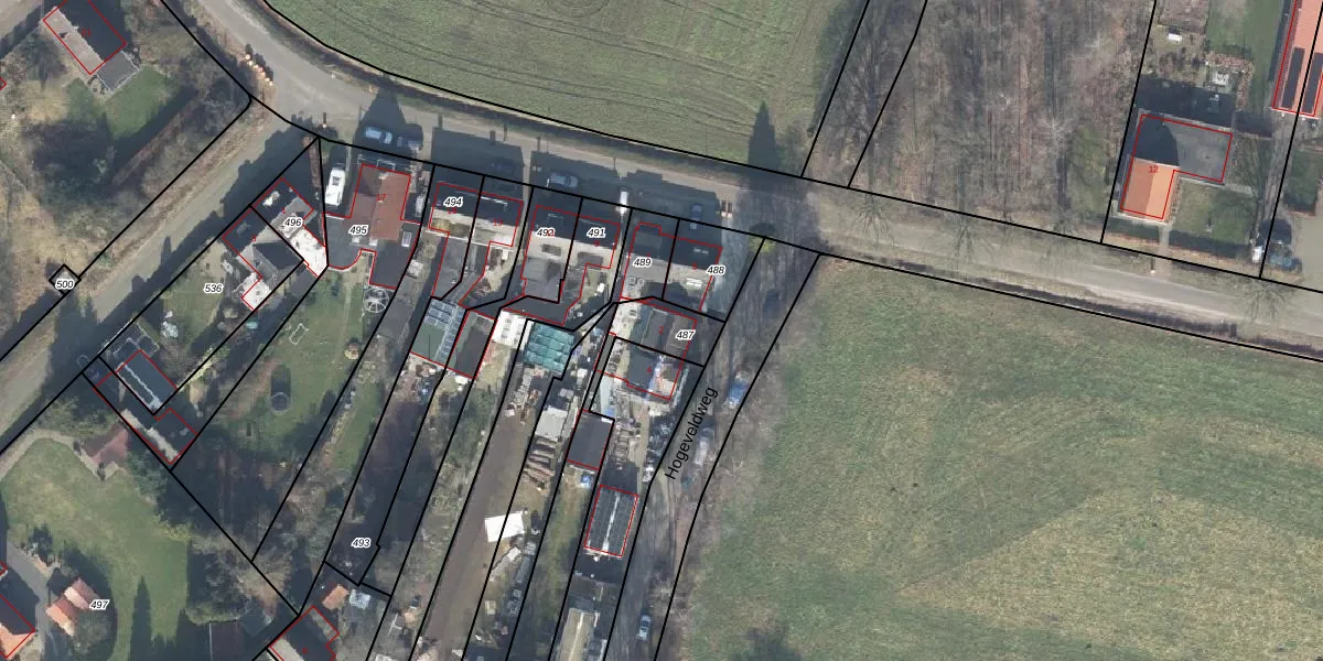 Hogeveldweg 2 is gelegen op kadastraal perceel LSR00Q487. Deze kadastrale aanduiding is uniek en wordt gebruikt door het Kadaster om eigendomsrechten en andere zakelijke rechten vast te leggen. Het perceel maakt onderdeel uit van de kadastrale gemeente Losser.