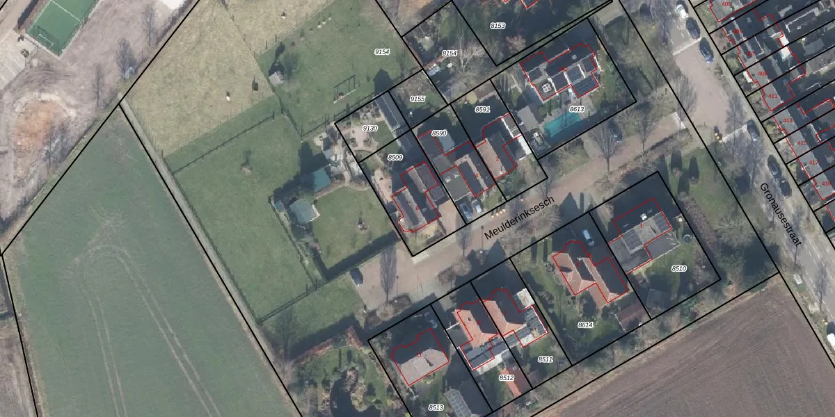 Het perceel waarop Meulderinksesch 6 staat heeft een oppervlakte van 393 m². Dit is een groot perceel. De perceeloppervlakte wordt geregistreerd door het Kadaster. Gedetailleerde informatie over de maten van dit perceel kunt u vinden in het rapport Kadastrale kaart met maatvoering van Meulderinksesch 6.