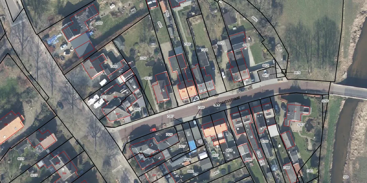 Het perceel waarop Weertsstraat 1-A staat heeft een oppervlakte van 492 m². Dit is een groot perceel. De perceeloppervlakte wordt geregistreerd door het Kadaster. Gedetailleerde informatie over de maten van dit perceel kunt u vinden in het rapport Kadastrale kaart met maatvoering van Weertsstraat 1-A.
