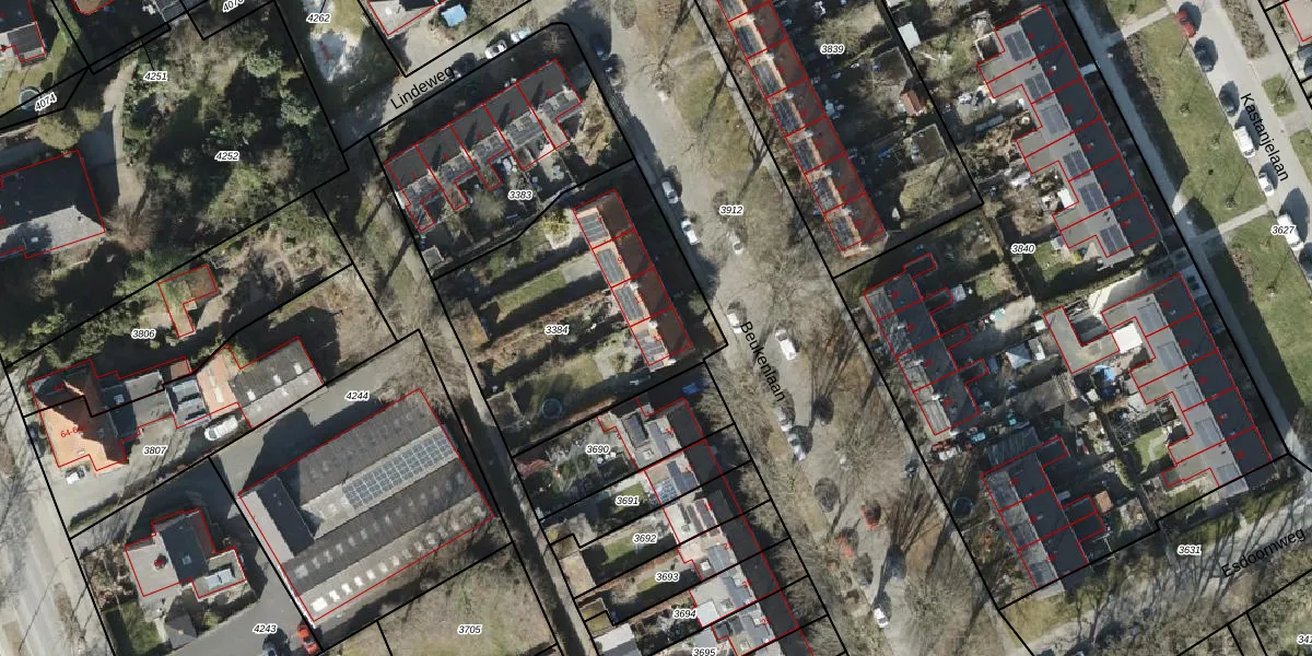 Beukenlaan 13 is gelegen op kadastraal perceel HRN01H3384. Deze kadastrale aanduiding is uniek en wordt gebruikt door het Kadaster om eigendomsrechten en andere zakelijke rechten vast te leggen. Het perceel maakt onderdeel uit van de kadastrale gemeente Haren.