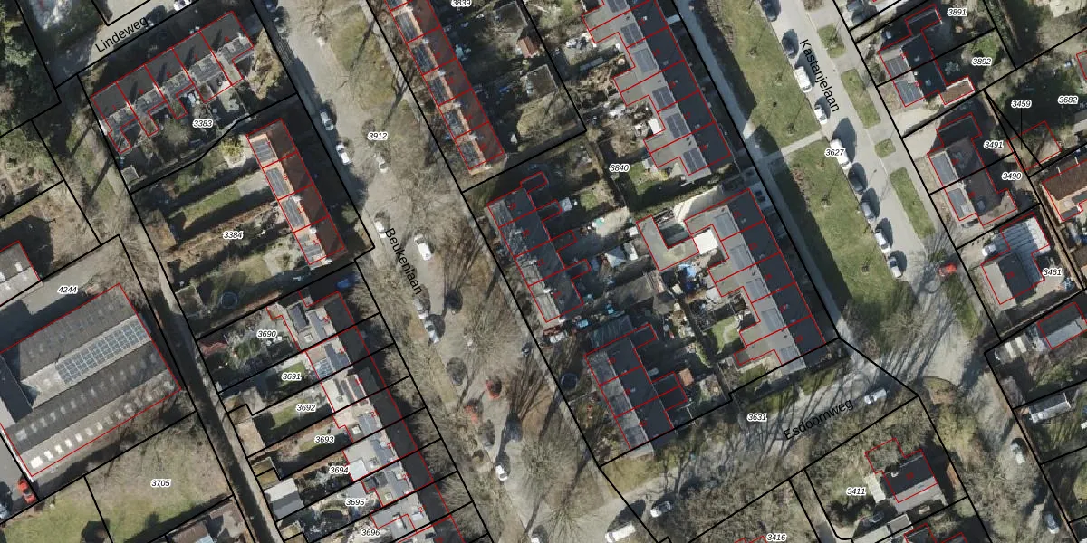 Het perceel waarop Beukenlaan 22 staat heeft een oppervlakte van 4240 m². Dit is een zeer groot perceel. De perceeloppervlakte wordt geregistreerd door het Kadaster. Gedetailleerde informatie over de maten van dit perceel kunt u vinden in het rapport Kadastrale kaart met maatvoering van Beukenlaan 22.