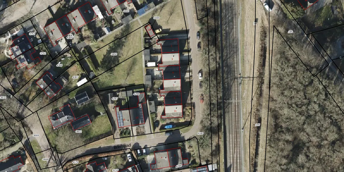 Het perceel waarop Brempad 7 staat heeft een oppervlakte van 4779 m². Dit is een zeer groot perceel. De perceeloppervlakte wordt geregistreerd door het Kadaster. Gedetailleerde informatie over de maten van dit perceel kunt u vinden in het rapport Kadastrale kaart met maatvoering van Brempad 7.