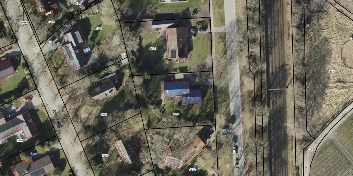 Parallelweg 57 is gelegen op kadastraal perceel HRN01H3593. Deze kadastrale aanduiding is uniek en wordt gebruikt door het Kadaster om eigendomsrechten en andere zakelijke rechten vast te leggen. Het perceel maakt onderdeel uit van de kadastrale gemeente Haren.