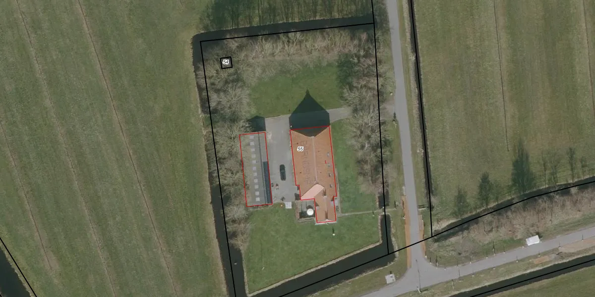 Het perceel waarop het adres ligt is BBG03-H-55. De afkorting 'BBG03' staat voor kadastrale gemeente Boornbergum. Het perceel is kleiner dan gemiddeld in Boornbergum. Het perceel is 4670 m² groot, terwijl het gemiddelde ligt op 7352,3 m². De grootste perceeloppervlakte in de kadastrale gemeente is 98,6 ha. De kleinste oppervlakte bedraagt 1 m². Op het perceel bevinden zich geen andere adressen. De huidige grenzen van het perceel zijn digitaal in de Basisregistratie Kadaster (BRK) geregistreerd op 17-10-2011.