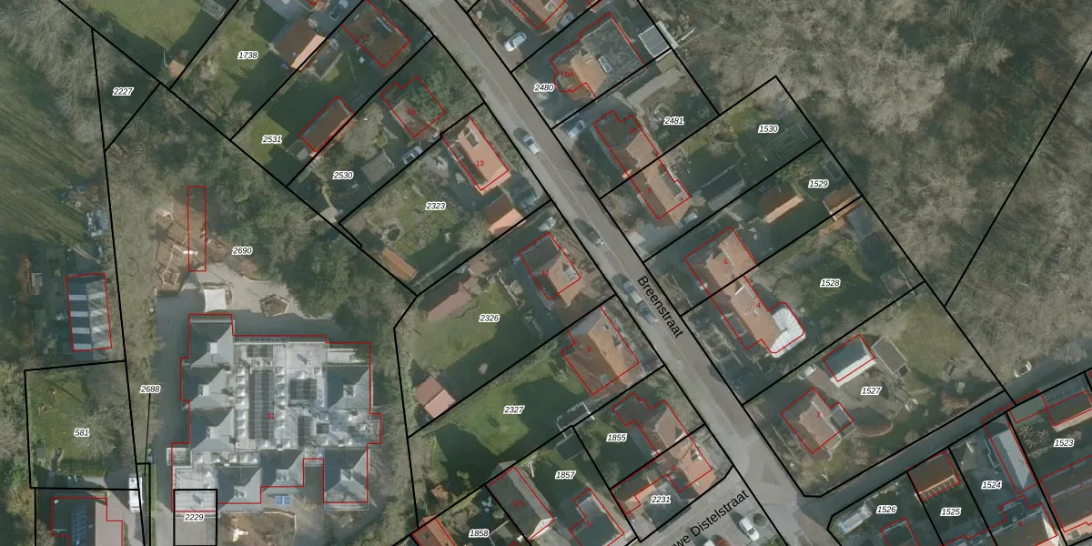 Gebruik de zoekbalk of klik op een perceel voor informatie over de adressen binnen dit perceel.
