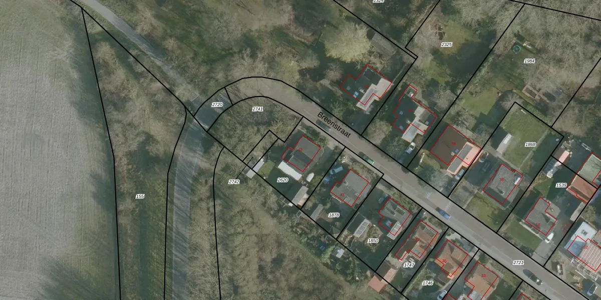 Het perceel waarop Breenstraat 43 staat heeft een oppervlakte van 481 m². Dit is een groot perceel. De perceeloppervlakte wordt geregistreerd door het Kadaster. Gedetailleerde informatie over de maten van dit perceel kunt u vinden in het rapport Kadastrale kaart met maatvoering van Breenstraat 43.