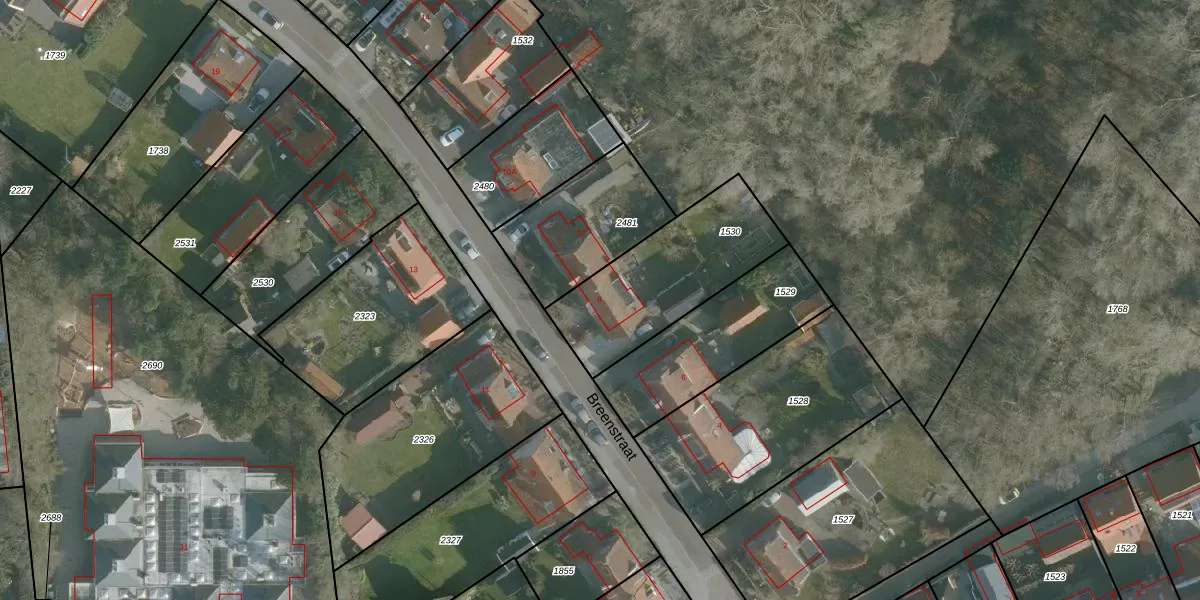 Gebruik de zoekbalk of klik op een perceel voor informatie over de adressen binnen dit perceel.
