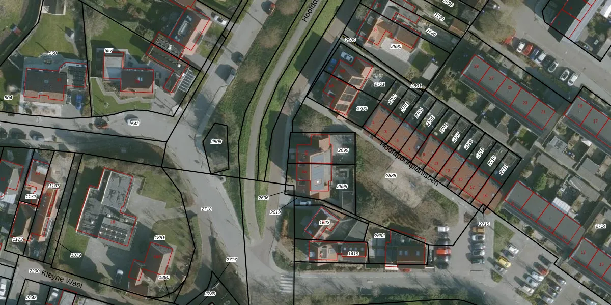 Gebruik de zoekbalk of klik op een perceel voor informatie over de adressen binnen dit perceel.