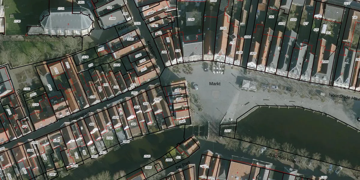 Het perceel waarop Markt 2 staat heeft een oppervlakte van 68 m². Dit is een klein perceel. De perceeloppervlakte wordt geregistreerd door het Kadaster. Gedetailleerde informatie over de maten van dit perceel kunt u vinden in het rapport Kadastrale kaart met maatvoering van Markt 2.