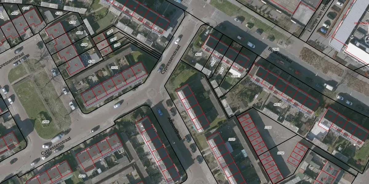 Het perceel waarop Abelenstraat 2 staat heeft een oppervlakte van 1920 m². Dit is een zeer groot perceel. De perceeloppervlakte wordt geregistreerd door het Kadaster. Gedetailleerde informatie over de maten van dit perceel kunt u vinden in het rapport Kadastrale kaart met maatvoering van Abelenstraat 2.