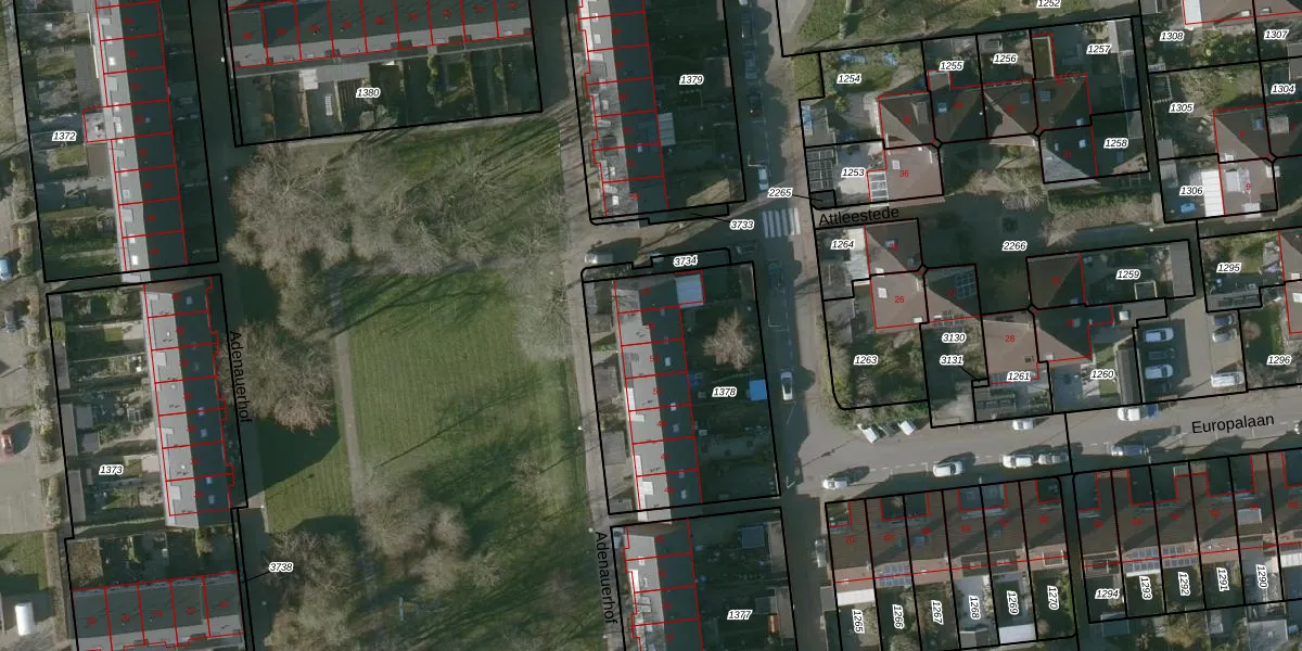 Het perceel waarop Adenauerhof 55 staat heeft een oppervlakte van 953 m². Dit is een groot perceel. De perceeloppervlakte wordt geregistreerd door het Kadaster. Gedetailleerde informatie over de maten van dit perceel kunt u vinden in het rapport Kadastrale kaart met maatvoering van Adenauerhof 55.