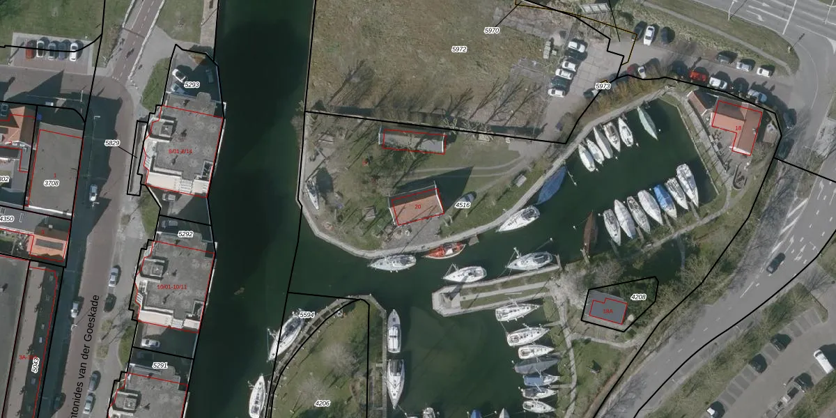Albert Joachimikade 20 is gelegen op kadastraal perceel GOE00D4516. Deze kadastrale aanduiding is uniek en wordt gebruikt door het Kadaster om eigendomsrechten en andere zakelijke rechten vast te leggen. Het perceel maakt onderdeel uit van de kadastrale gemeente Goes.