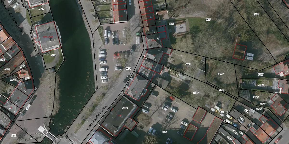 Albert Joachimikade 9 is gelegen op kadastraal perceel GOE00D5080. Deze kadastrale aanduiding is uniek en wordt gebruikt door het Kadaster om eigendomsrechten en andere zakelijke rechten vast te leggen. Het perceel maakt onderdeel uit van de kadastrale gemeente Goes.