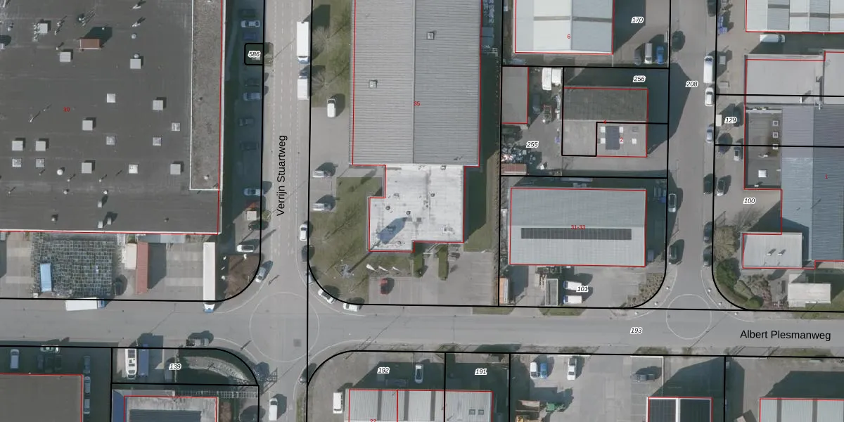 Het perceel waarop Albert Plesmanweg 35 staat heeft een oppervlakte van 5240 m². Dit is een zeer groot perceel. De perceeloppervlakte wordt geregistreerd door het Kadaster. Gedetailleerde informatie over de maten van dit perceel kunt u vinden in het rapport Kadastrale kaart met maatvoering van Albert Plesmanweg 35.