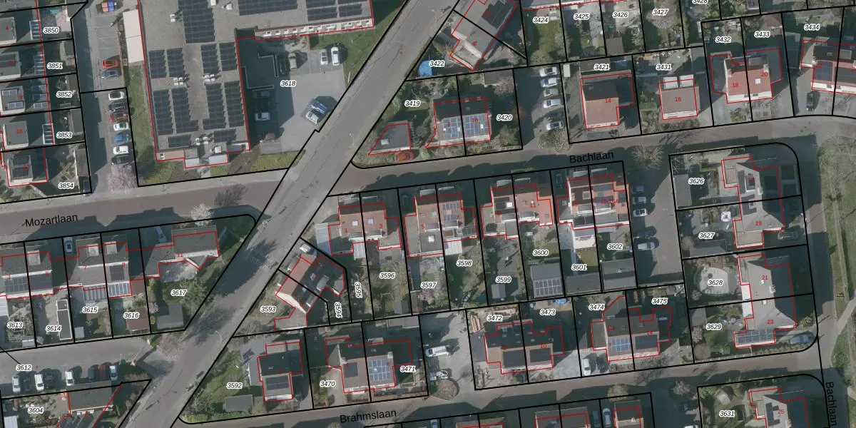 Bachlaan 5 is gelegen op kadastraal perceel GOE00E3597. Deze kadastrale aanduiding is uniek en wordt gebruikt door het Kadaster om eigendomsrechten en andere zakelijke rechten vast te leggen. Het perceel maakt onderdeel uit van de kadastrale gemeente Goes.
