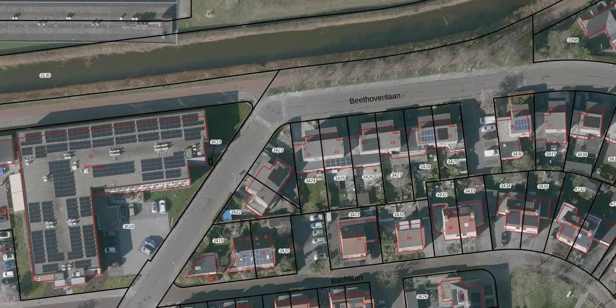 Het perceel waarop Beethovenlaan 13 staat heeft een oppervlakte van 277 m². Dit is een middelgroot perceel. De perceeloppervlakte wordt geregistreerd door het Kadaster. Gedetailleerde informatie over de maten van dit perceel kunt u vinden in het rapport Kadastrale kaart met maatvoering van Beethovenlaan 13.