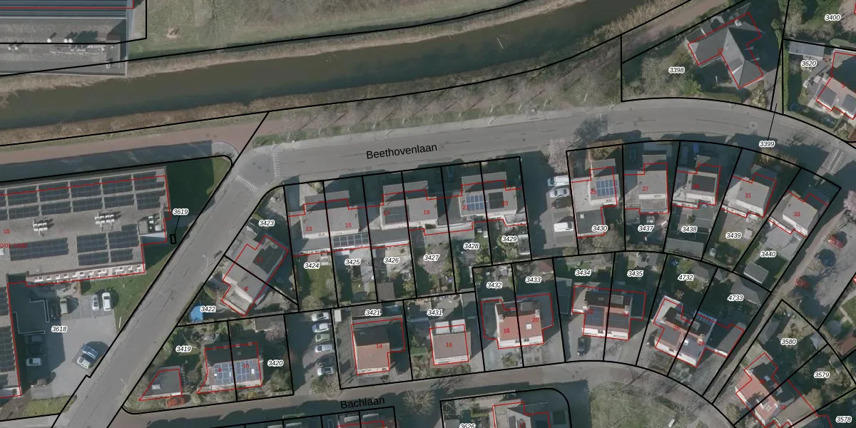 Het perceel waarop Beethovenlaan 19 staat heeft een oppervlakte van 277 m². Dit is een middelgroot perceel. De perceeloppervlakte wordt geregistreerd door het Kadaster. Gedetailleerde informatie over de maten van dit perceel kunt u vinden in het rapport Kadastrale kaart met maatvoering van Beethovenlaan 19.