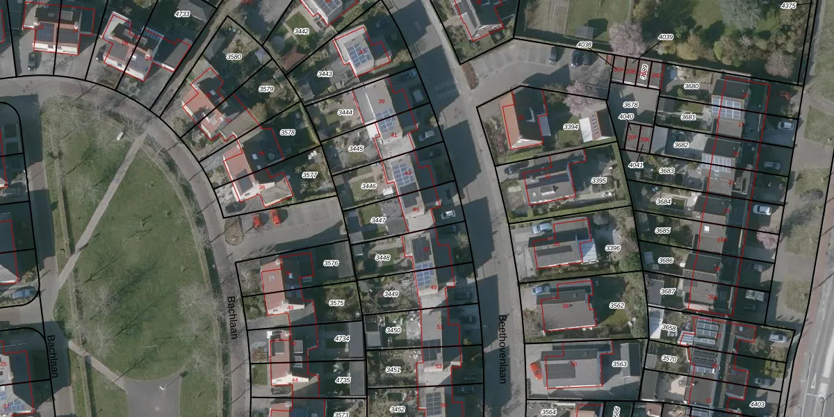 Gebruik de zoekbalk of klik op een perceel voor informatie over de adressen binnen dit perceel.