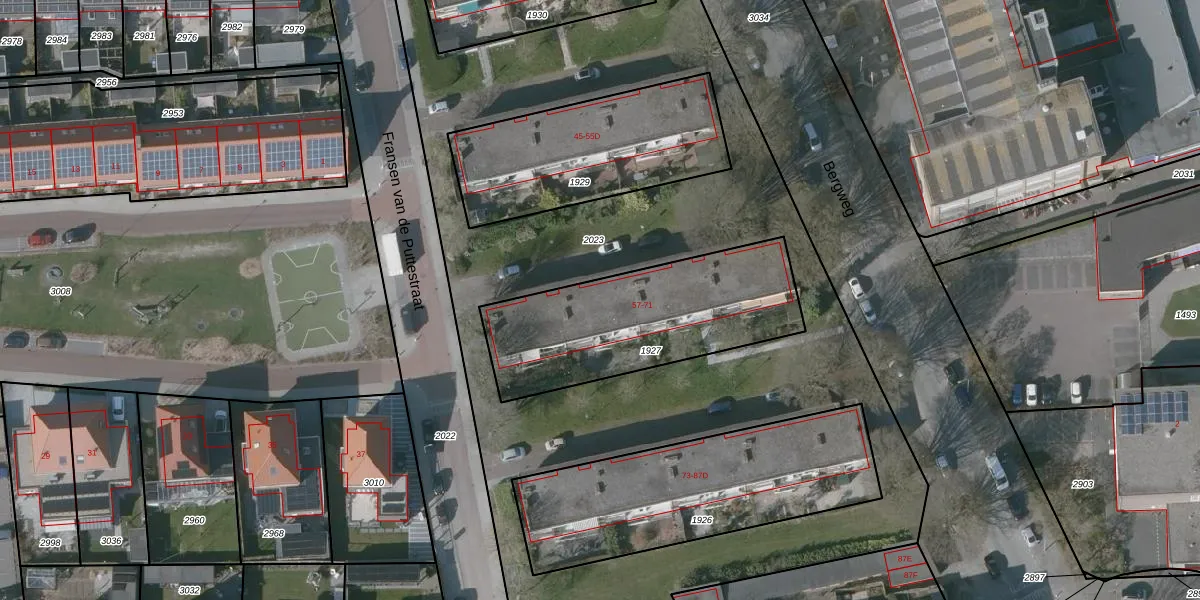 Het perceel waarop Bergweg 61 staat heeft een oppervlakte van 841 m². Dit is een groot perceel. De perceeloppervlakte wordt geregistreerd door het Kadaster. Gedetailleerde informatie over de maten van dit perceel kunt u vinden in het rapport Kadastrale kaart met maatvoering van Bergweg 61.